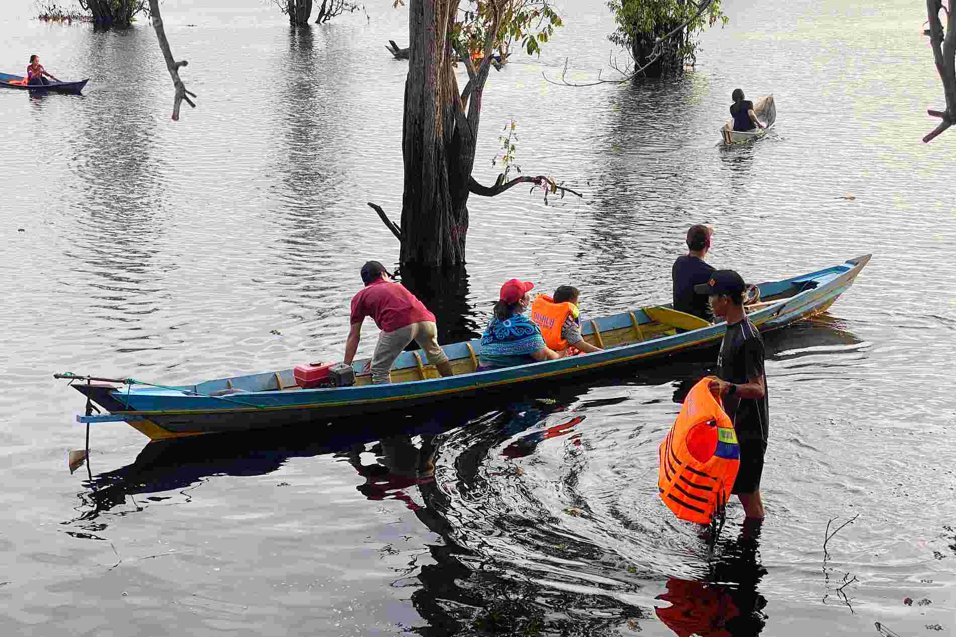 Pengunjung sedang menikmati wisata susur danau dengan kelotok di Danau Dayu Kabupaten Barito Timur, Senin, 27 Januari 2025.