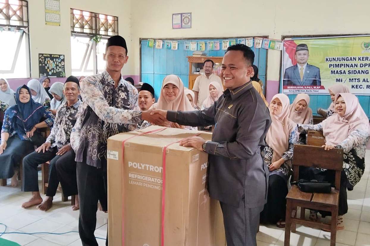 Sebagai bentuk perhatian, Nursulistio menyerahkan satu unit kulkas untuk MI dan satu tandon air untuk Raudhatul Athfal (RA), serta bingkisan Lebaran untuk para guru.