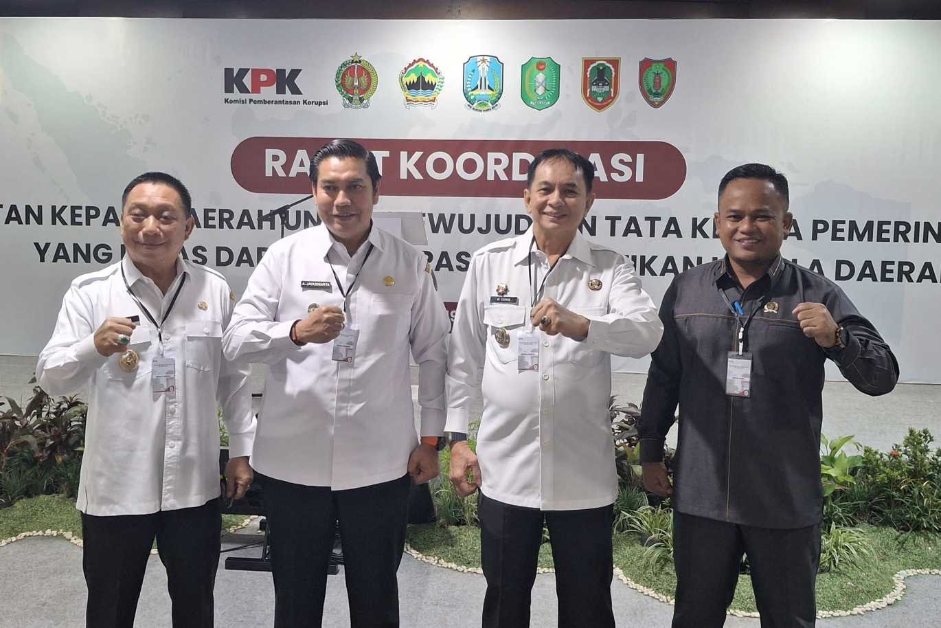Bupati Barito Timur M Yamin (tiga dari kiri), dan Ketua DPRD Barito Timur Nursulistio (paling kanan), saat menghadiri Rakor Penguatan Kepala Daerah yang diselenggarakan Komisi Pemberantasan Korupsi (KPK), di Jogja Expo Center (JEC), Yogyakarta, Rabu, 19 Maret 2025.