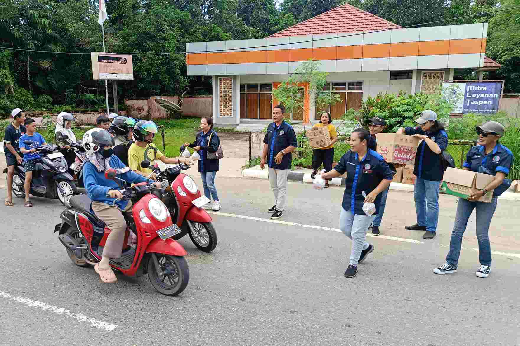 IWO Barito Timur kembali menggelar aksi sosial dengan membagikan takjil kepada pengguna jalan di Jalan A Yani, tepatnya di depan Kantor Pos Tamiang Layang, Senin, 24 Maret 2025.