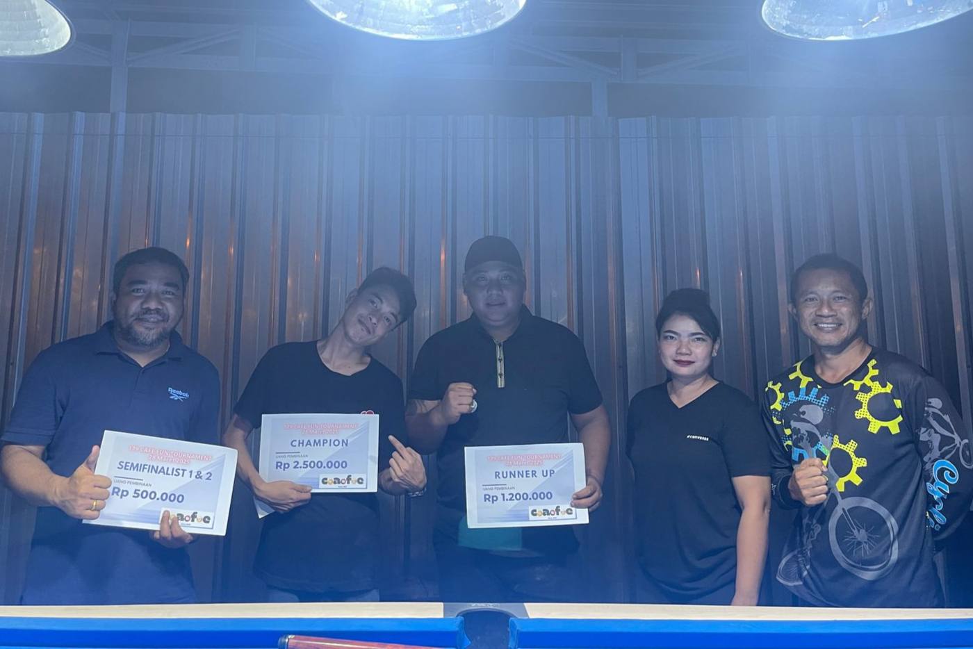Adapun daftar pemenang Cafe 179 Billiard Fun Tournament yaitu juara pertama Cristian Alexander dengan nilai hadiah uang tunai Rp2,5 juta, juara kedua Frans Septiadi Hamel dengan hadiah uang tunai Rp1,2 juta, serta juara ketiga Abram Manullang dengan hadiah uang tunai Rp500 ribu.