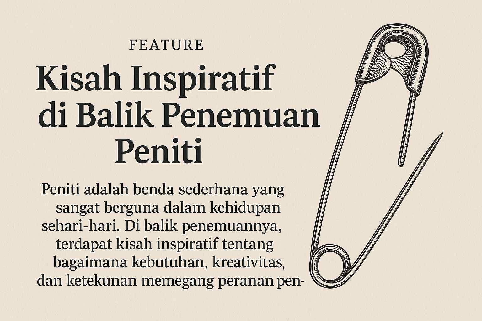 BERITA62.COM – Siapa sangka, sebuah benda mungil yang kerap kita anggap sepele seperti peniti, menyimpan kisah besar tentang kejeniusan, ketekunan dan semangat pantang menyerah.
