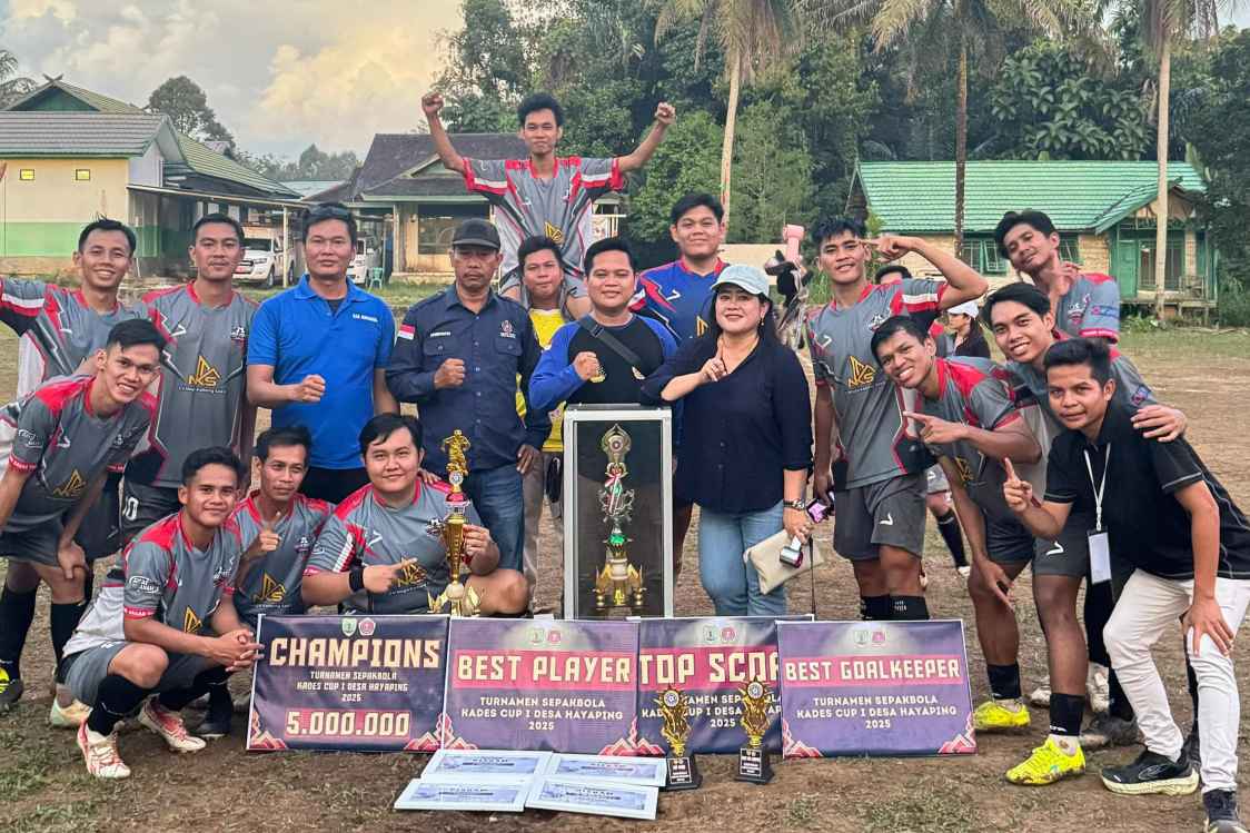 BERITA62.COM, Barito Timur – Tim Hayaping Mandiri berhasil keluar sebagai juara Turnamen Sepak Bola Kades Cup I Desa Hayaping Kabupaten Barito Timur, setelah menaklukkan Flobamora A FC dengan skor tipis 2-1 dalam laga final yang berlangsung di Lapangan Aging Wira Negara, Minggu, 15 Juni 2025.