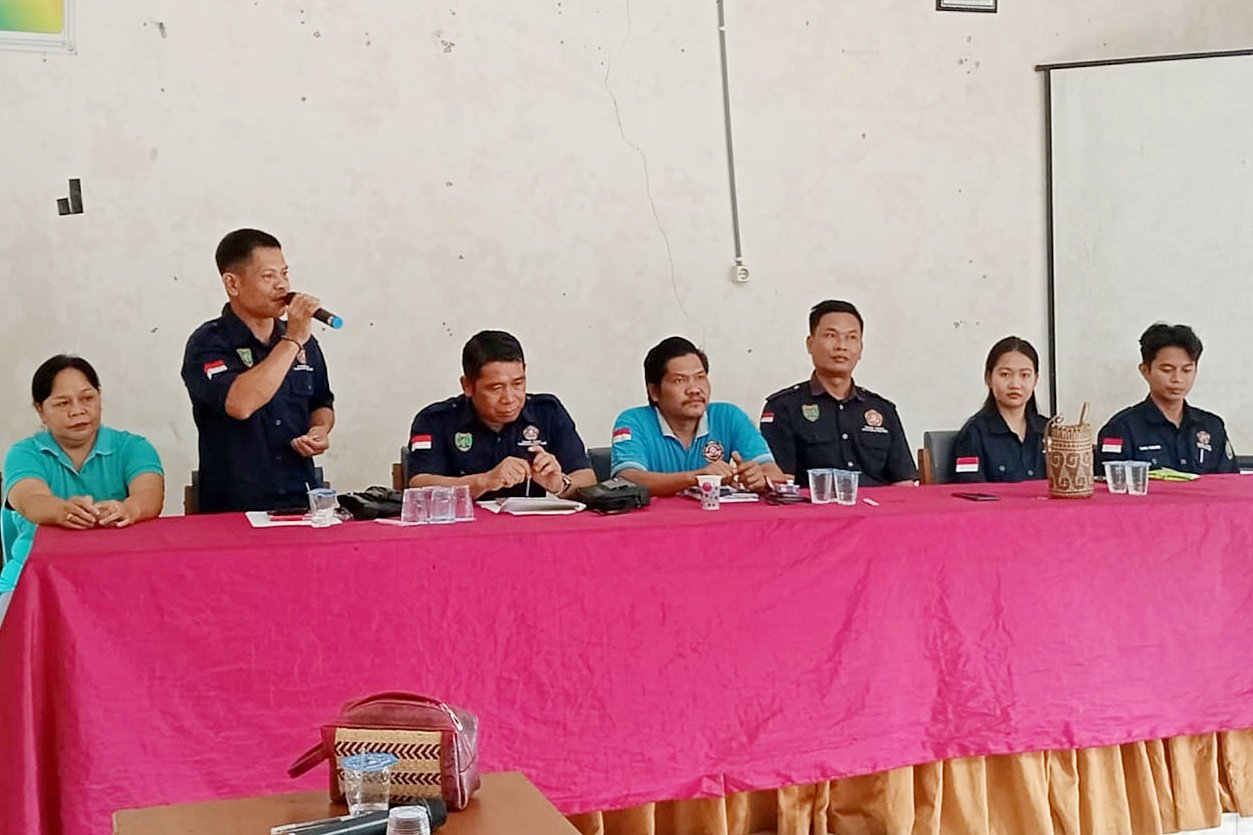 Musyawarah Pemdes dan pengurus Karang Taruna Hepung Banyanna Desa Mangkarap yang dihadiri oleh Ketua Karang Taruna Kabupaten Barito Timur, Ariwaratanu (tiga dari kanan), Minggu, 14 September 2025.