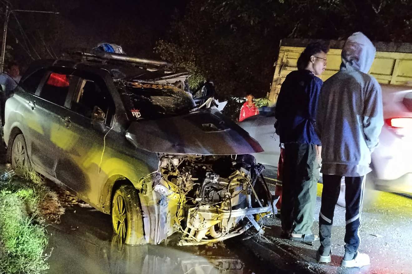 Tabrakan antara sebuah mobil Daihatsu Xenia dan truk di jalan nasional RT 02 Desa Kupang Baru Kabupaten Barito Timur, dini hari, Kamis, 18 September 2025.