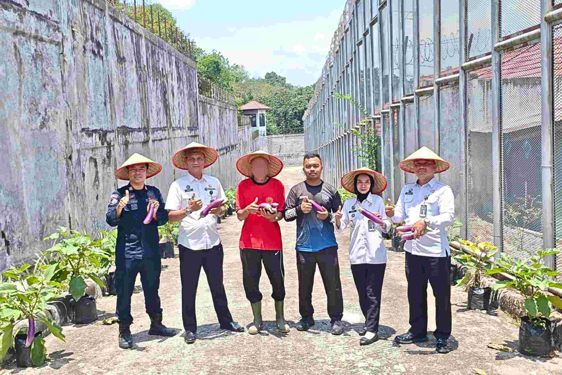 Agung Novarianto menyampaikan harapannya agar keberhasilan panen terong kali ini menjadi motivasi bagi WBP untuk terus aktif dalam berbagai program kemandirian.
