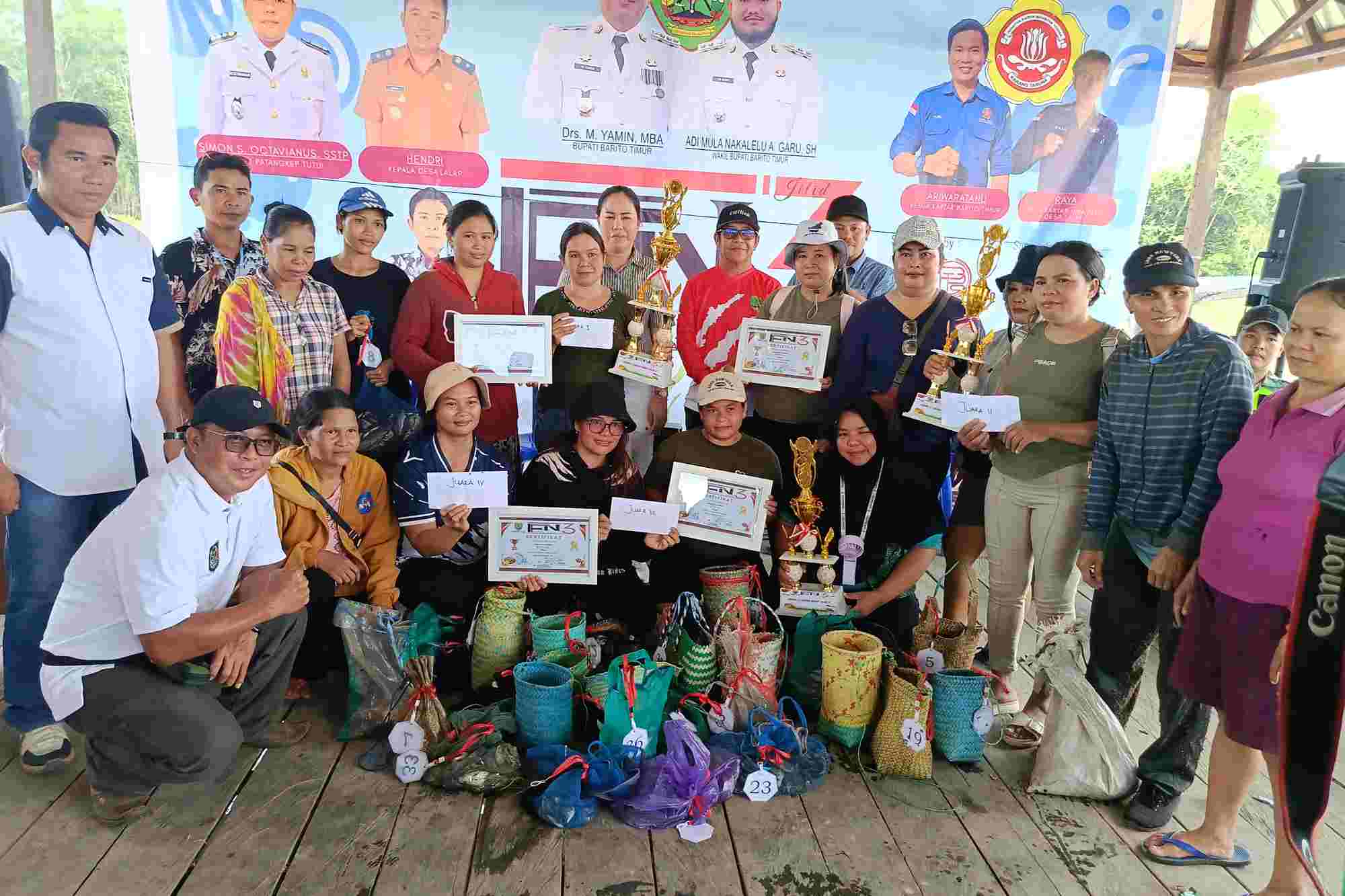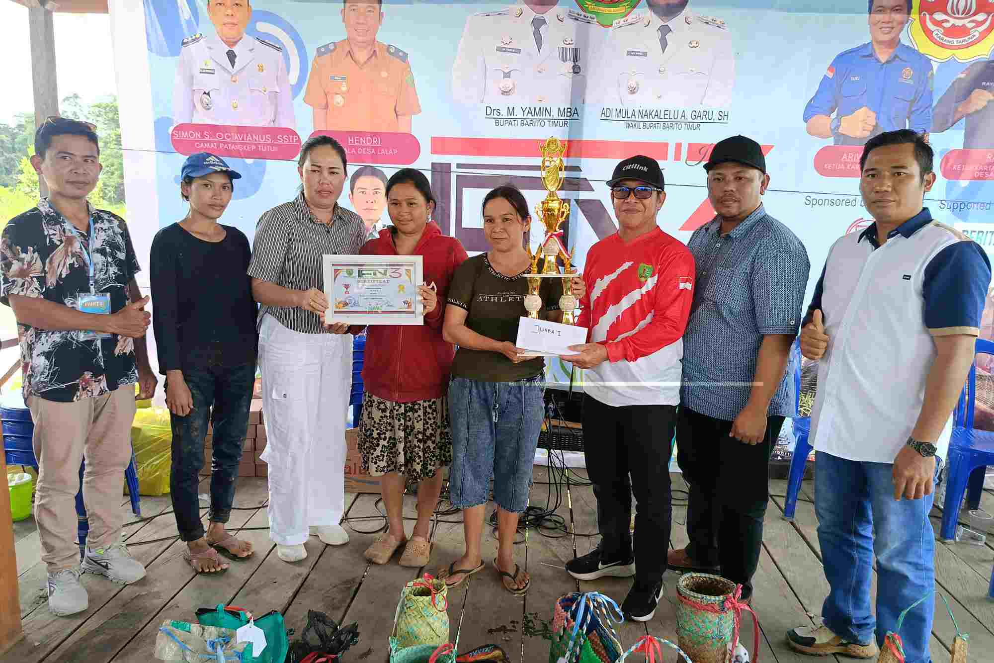 Para tim pemenang berpose bersama usai menerima piala, piagam dan hadiah uang tunai pada Festival Nikep 3 di Desa Lalap Kabupaten Barito Timur, Sabtu, 27 September 2025.