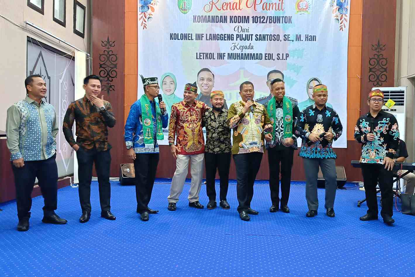 BERITA62.COM, Barito Timur – Pemerintah Kabupaten Barito Timur menyambut Komandan Kodim (Dandim) 1012 Buntok yang baru, Letkol Inf Muhammad Edi, dengan prosesi adat Natas Banyang. Tradisi tersebut digelar dalam acara kenal pamit dari Kolonel Inf Langgeng Pujut Santoso kepada penggantinya, di Rumah Jabatan Bupati Barito Timur, Kamis malam, 2 Oktober 2025.
