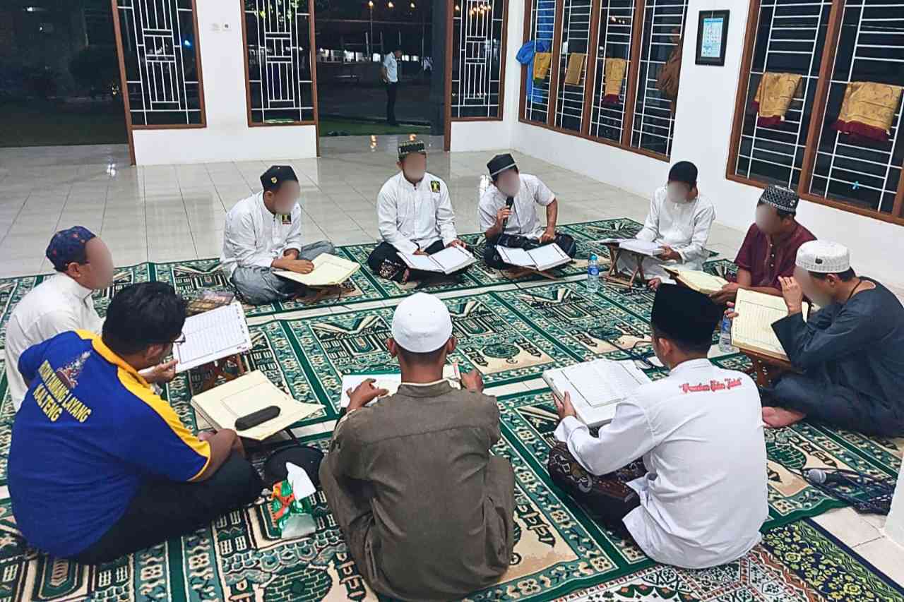 Selepas salat isya dan tarawih berjamaah, sebelas Warga Binaan Pemasyarakatan (WBP) duduk melingkar di Masjid Al-Akbar Rutan. Di hadapan mereka, mushaf terbuka. Jari-jari menelusuri baris demi baris. Suara mereka bergantian. Lirih. Terjaga. Penuh kesadaran.
