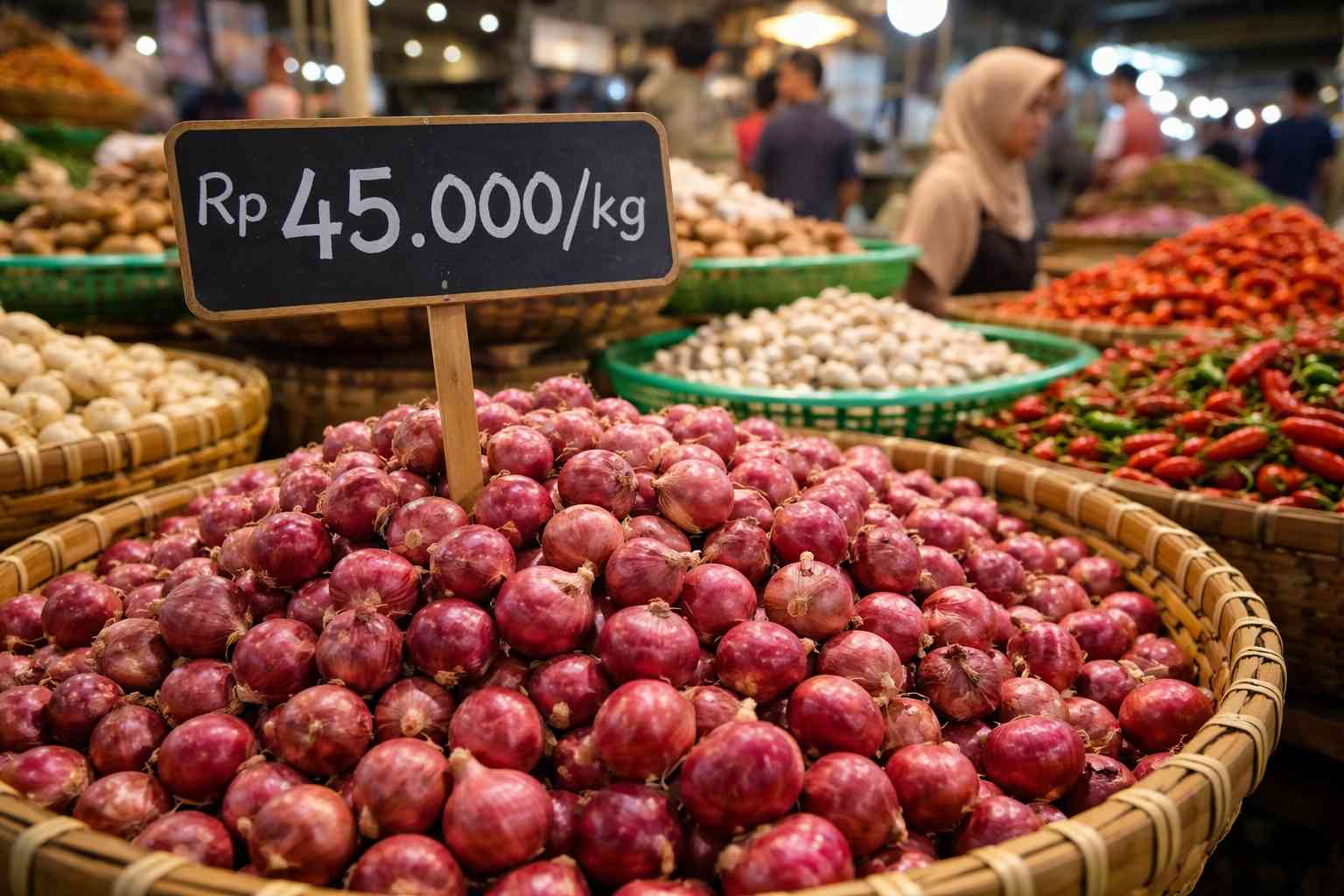 “Sampai hari ini untuk bawang merah masih berkisar di harga Rp45.000 per kilogram. Itu masih harga normal,” ujarnya.