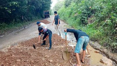 Masih Banyak Jalan Berlubang, Satlantas Polres Barito Timur Kembali Lakukan Penimbunan